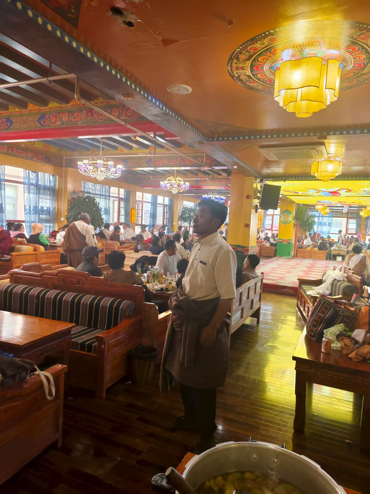 在拉萨市堆龙德庆区的“班戈县东阿联村藏家宴”大厅里暖意融融,平措穿梭于宾客间,热情地招呼着客人。