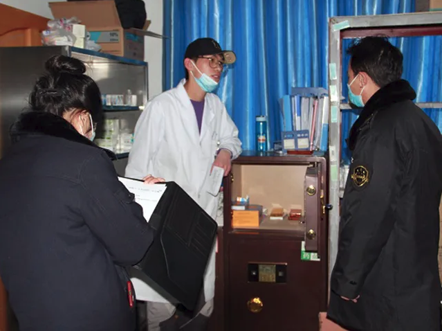 期间,民警深入辖区医院、卫生院、诊所、药店等医疗领域,详细检查各场所芬太尼类药品质量管理、安防措施、流通渠道、使用登记等情况,对存在的隐患问题当场责令整改,同时向营业人员细致宣讲了易制毒化学品和精麻药品管理相关法律法规,坚决杜绝芬太尼类药品流入非法渠道。